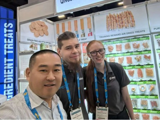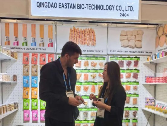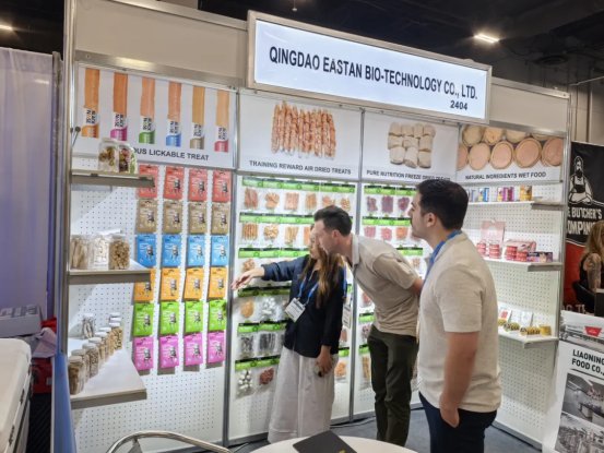 双安生物科技(海辰有机母公司)此次携三大产品线——烘干、冻干及罐头系列精彩亮相,全面展示公司在宠物食品领域的技术积累与产品实力。特别是有机原料的使用与鲜食工艺的创新,多款符合国际标准的有机主粮与天然鲜食产品吸引了大量专业观众驻足咨询,获得众多国际买家的青睐与合作意向。
